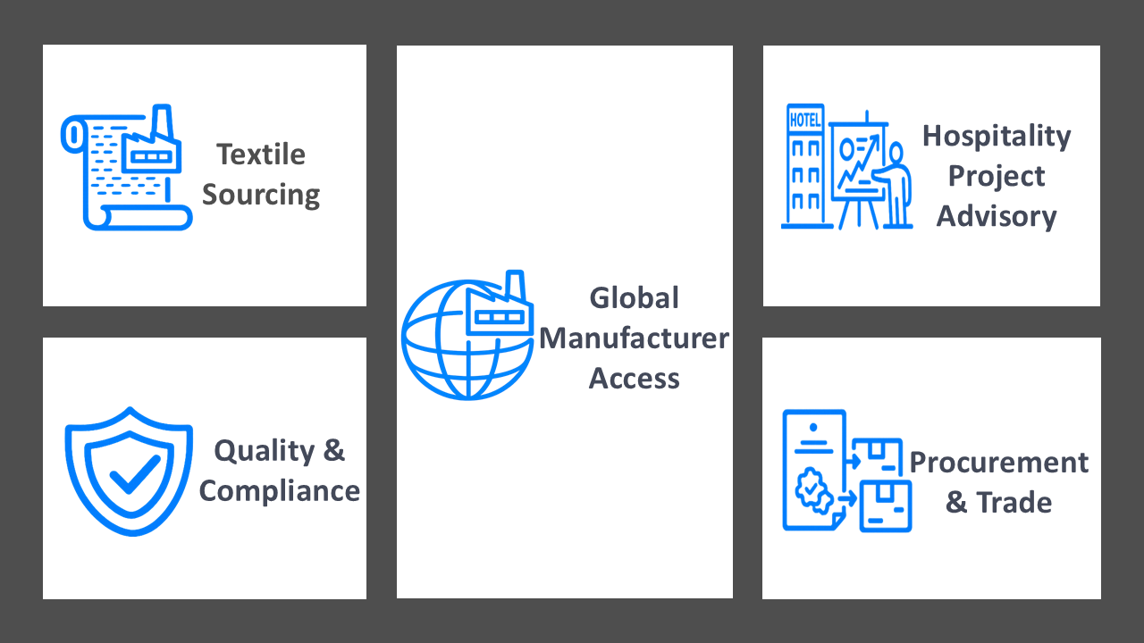 We help hospitality professionals make confident textile decisions by managing the entire sourcing and selection process — from manufacturer identification to delivery readiness